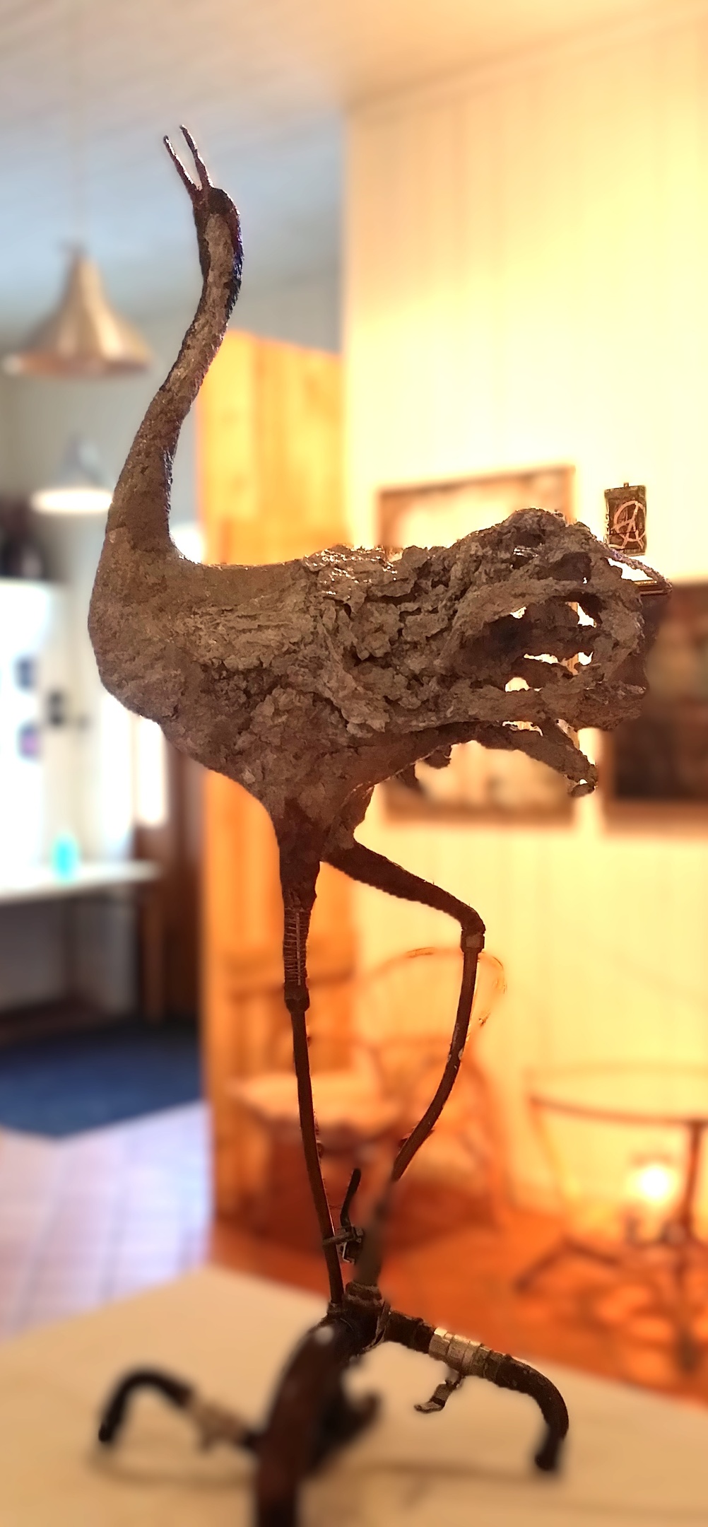Jag arbetar just nu mestadels med akrylfärger på duk. Jag har olika perioder från skulptur tillverkning av återbruk och pappersmassa till måleri och skapande av olika slag.