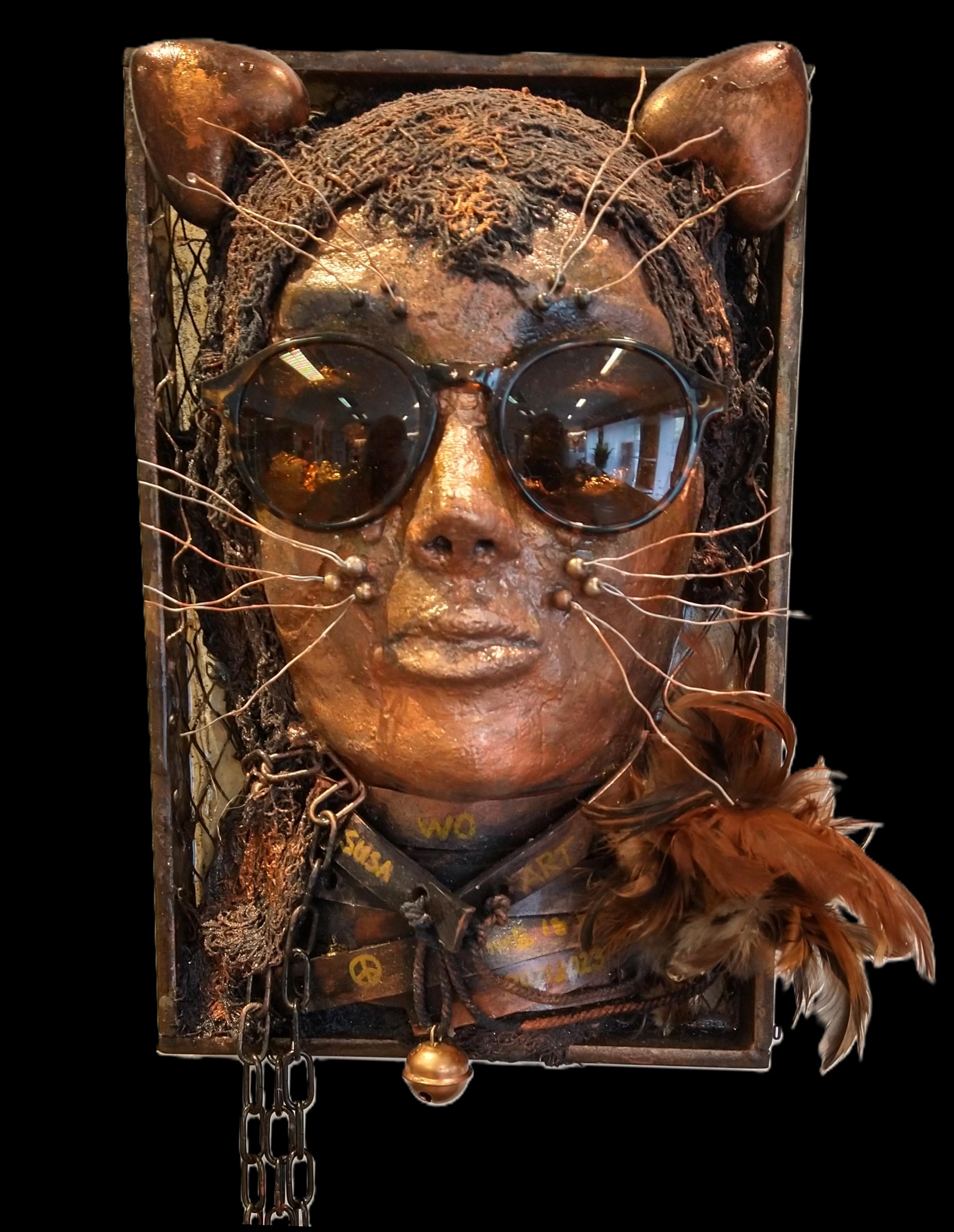 Jag arbetar just nu mestadels med akrylfärger på duk. Jag har olika perioder från skulptur tillverkning av återbruk och pappersmassa till måleri och skapande av olika slag.